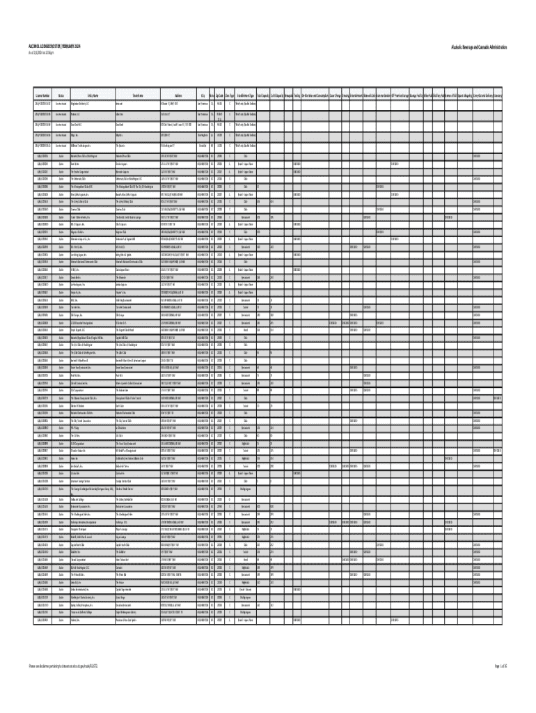 ALCOHOL LICENSEE ROSTER |FEBRUARY 2024Alcoholic Beverage and Cannabis Administrations of 2/1/2024 at 12:56pmLicense NumberStatus22LAP0000001302License IssuedMaplebear Delivery Identity Name