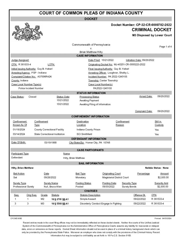 DOCKET Number: CP32CR00007822022CRIMINAL DOCKET