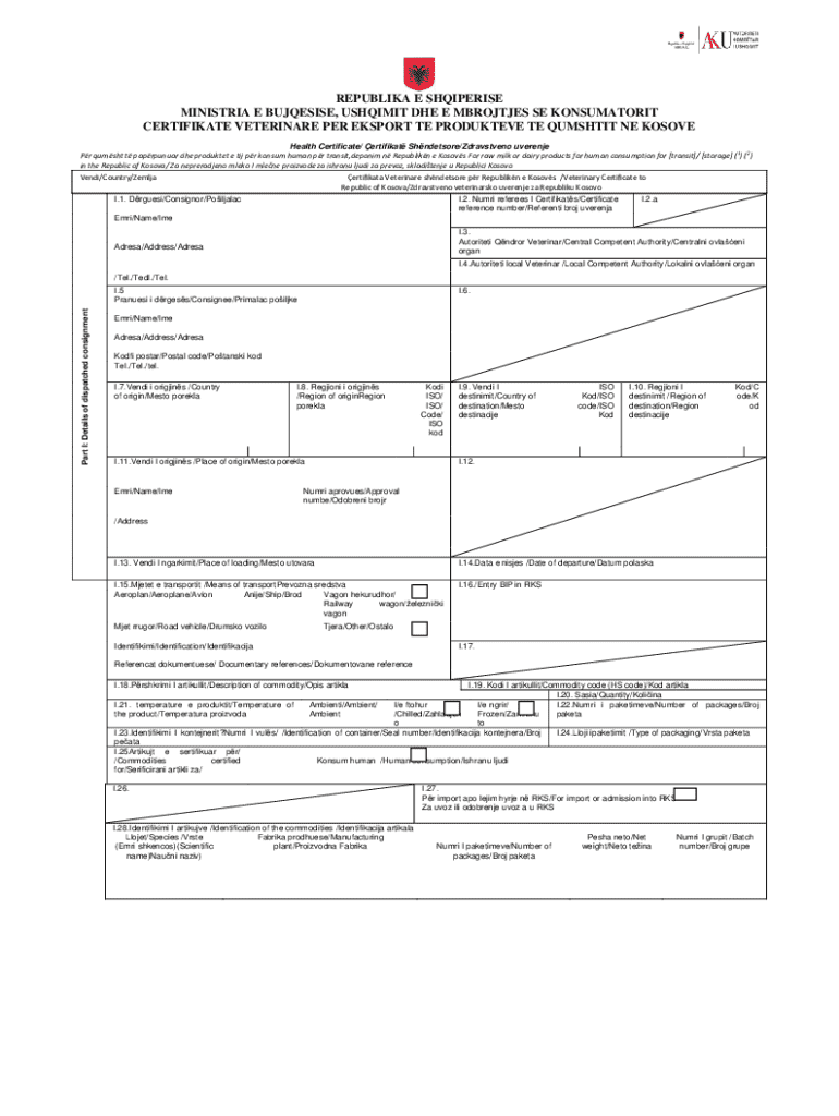 CERTIFICATE VETERINARY PER E-SPORT TE PRODUCTIVE TE QUMSHTIT NE KOSOVO