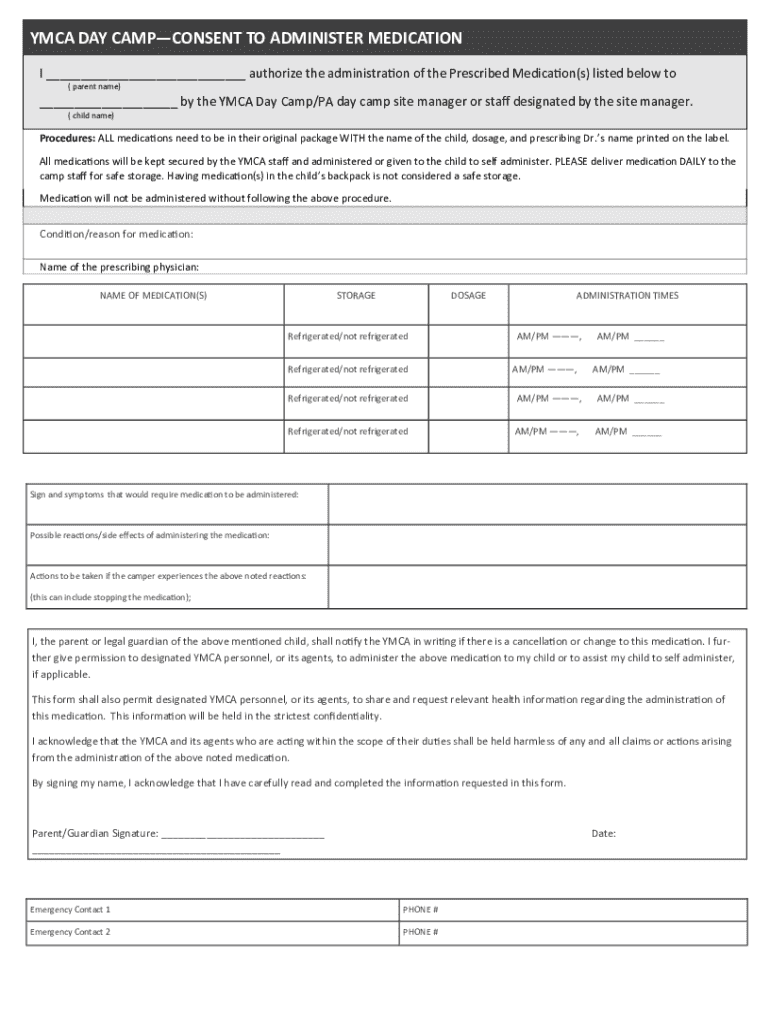 Get the free YMCA DAY CAMPCONSENT TO ADMINISTER ...