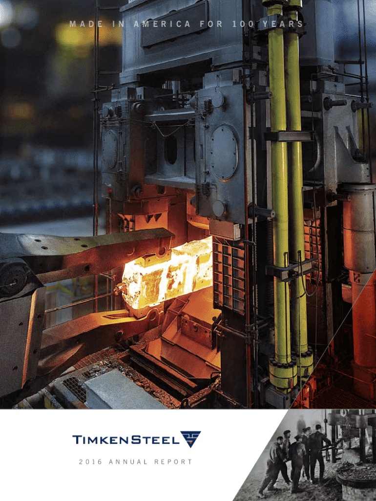 M A D E2 016I NA M E R I C AA N U A LR E P O R TF O R10 0Y E A RS With 100 years of technical innovation at our core, TimkenSteel thrives on challenges.
