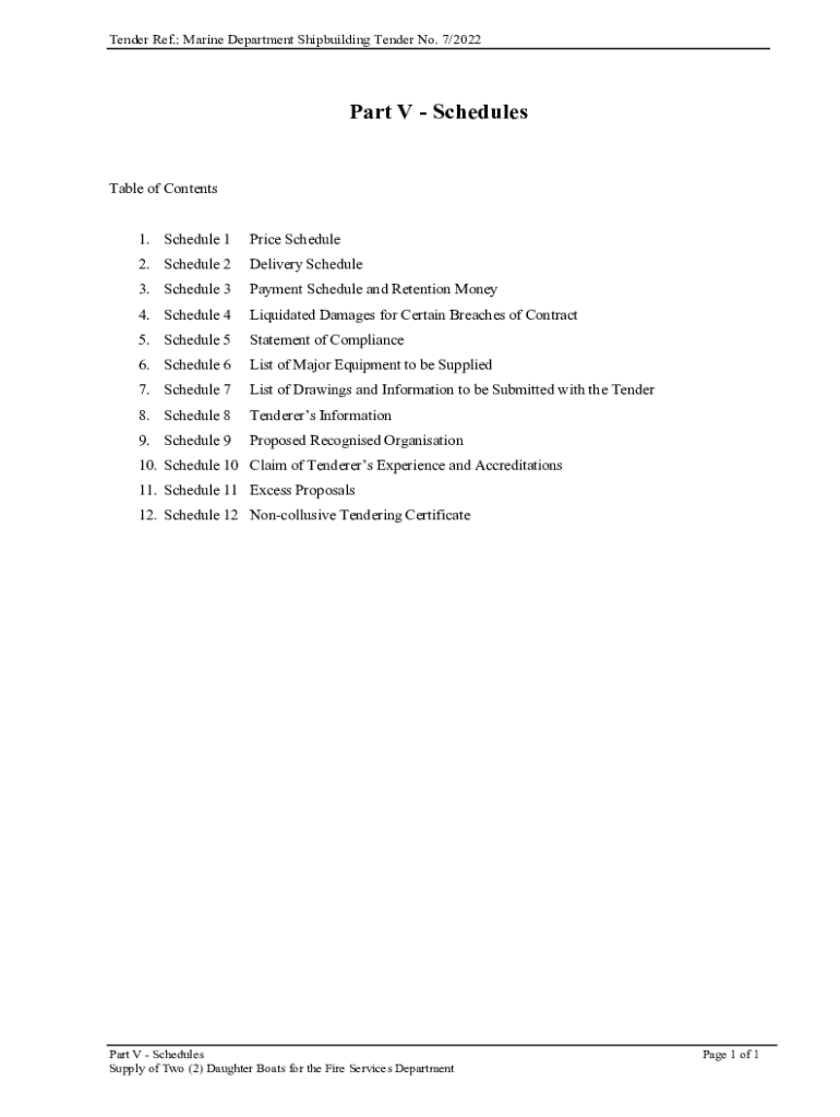 Tender Ref.: Marine Department Shipbuilding Tender No. 7/2022Part V Schedules