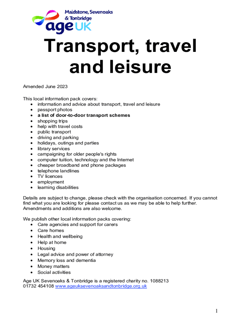 Transport, travel and leisure Amended June 2023 This local information pack covers: information and advice about transport, travel and leisure passport photos a list of doortodoor transport schemes