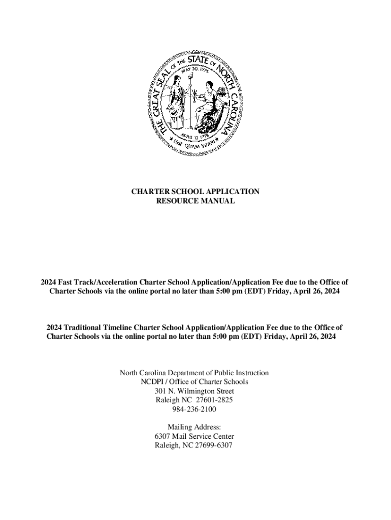 RESOURCE MANUAL2024 Fast Track/Acceleration Charter School Application/Application Fee due to the Office of