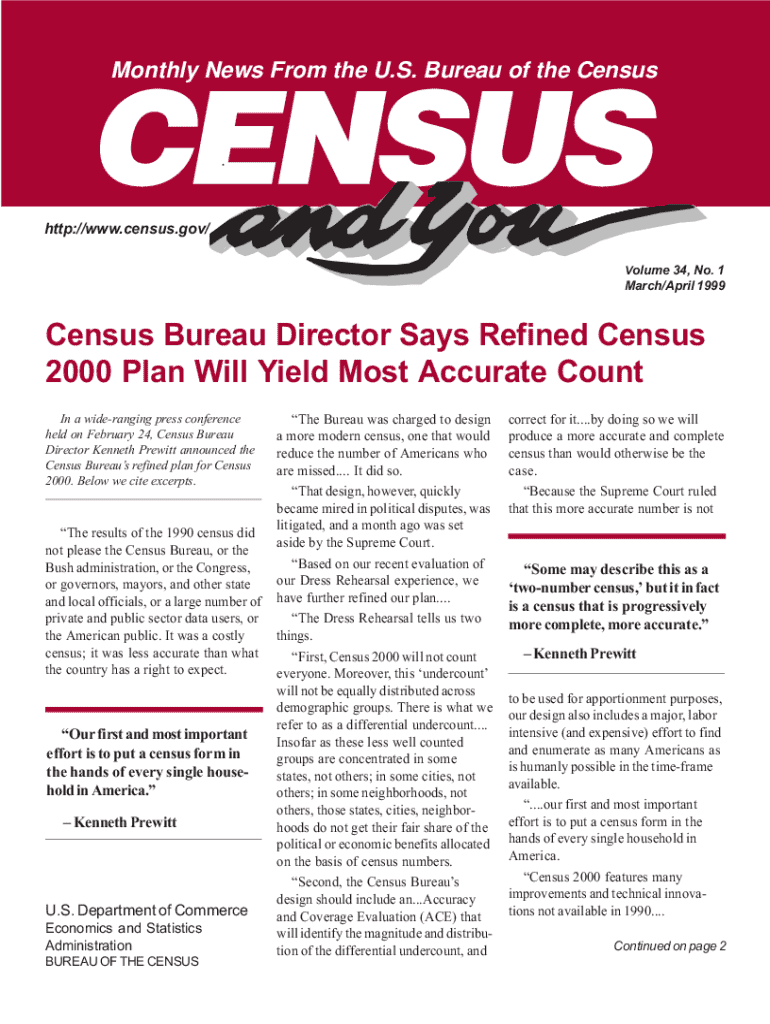 Volume 34, No. 1March/April 1999Census Bureau Director Says Refined Census