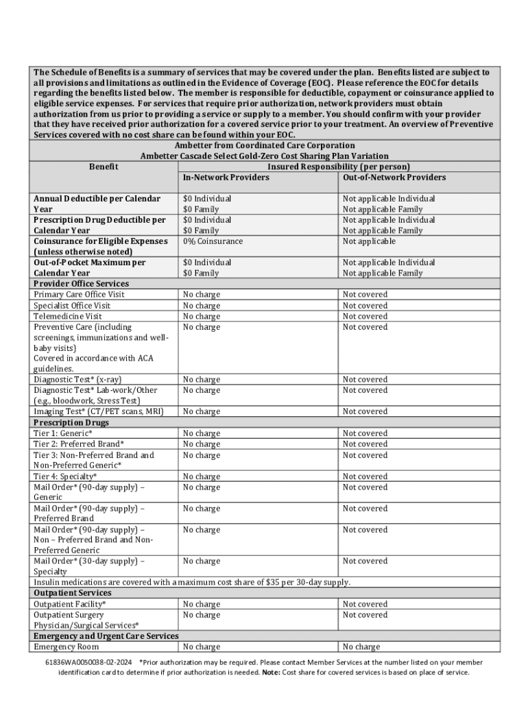 The Schedule of Benefits is a summary of services that may be covered under the plan. Benefits listed are subject to
