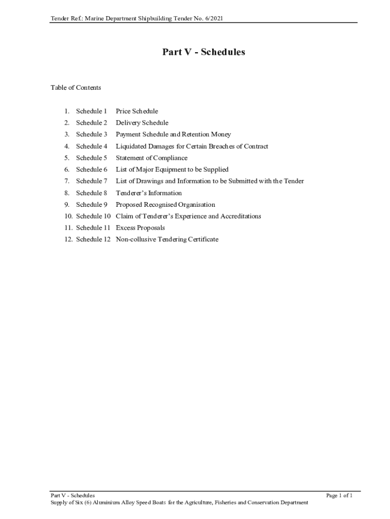 Get the free Marine Department Shipbuilding Tender No. 6/2021 Pt.5. Part V - Schedules
