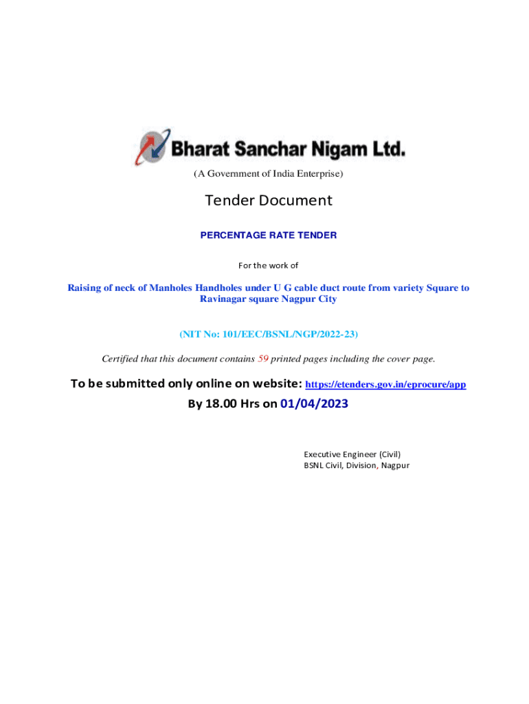 Service providers, contractors, and organizations involved in telecommunications infrastructure projects are required to file e-tender for OFC laying.