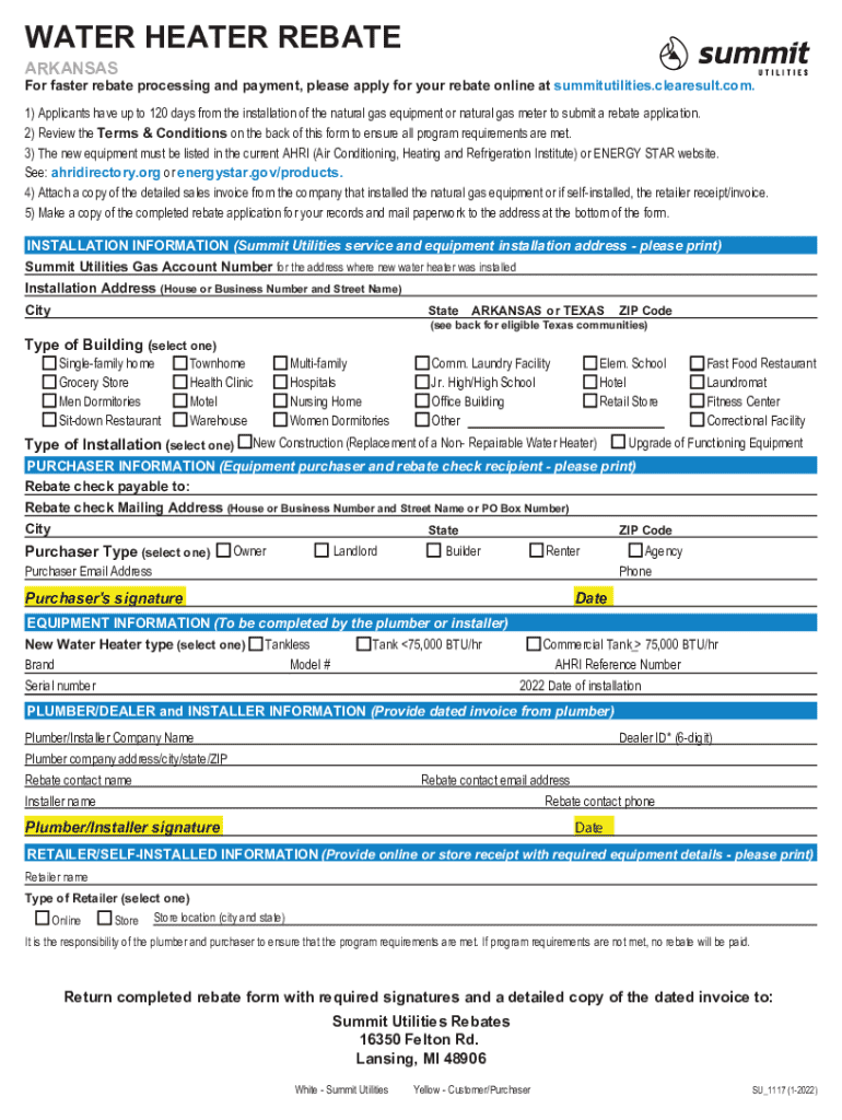 Get the free Summit Utilities of Arkansas - Apply for a Rebate