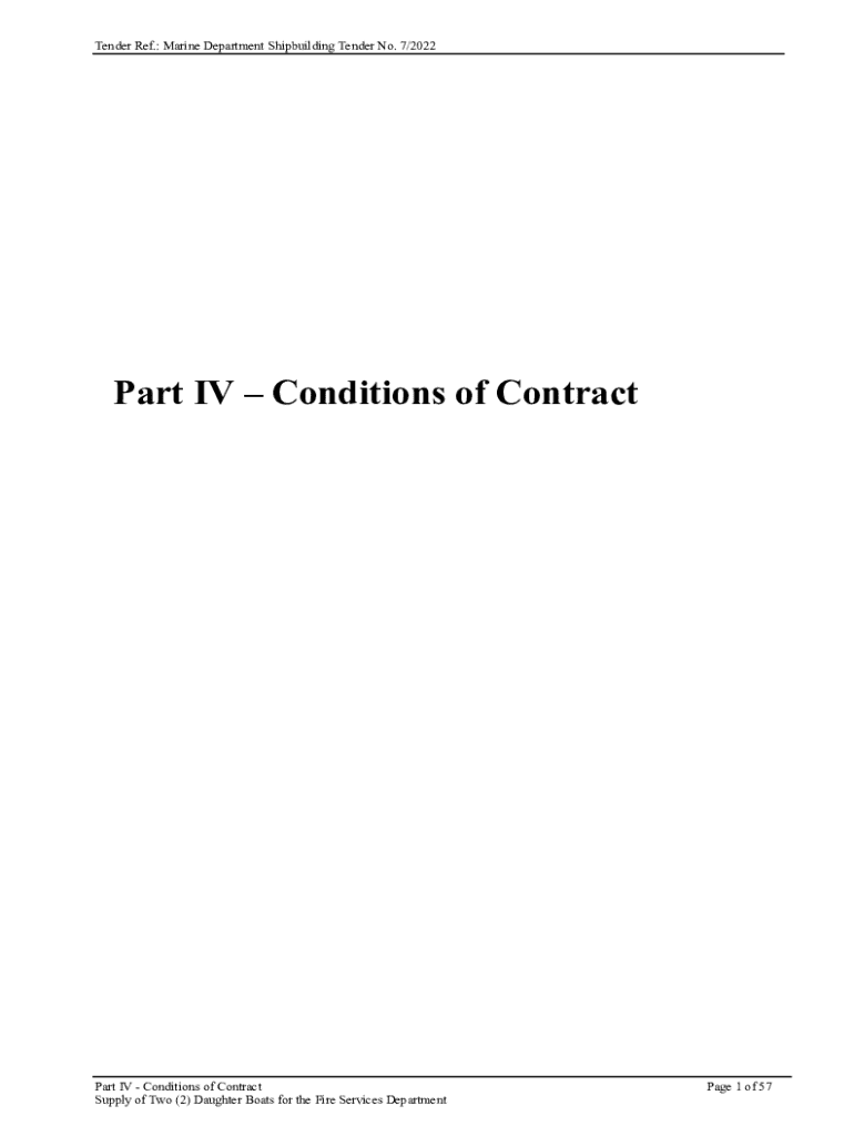 Tender Ref.: Marine Department Shipbuilding Tender No. 7/2022Part IV Conditions of ContractPart IV Conditions of Contract Supply of Two (2) Daughter Boats for the Fire Services DepartmentPage 1 of