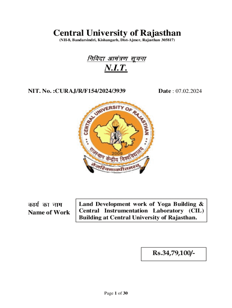 NIT. No. CU RAJ/R/F154/2024/3939Name of Workmate : 07.02.2024Land Development work of Yoga Building