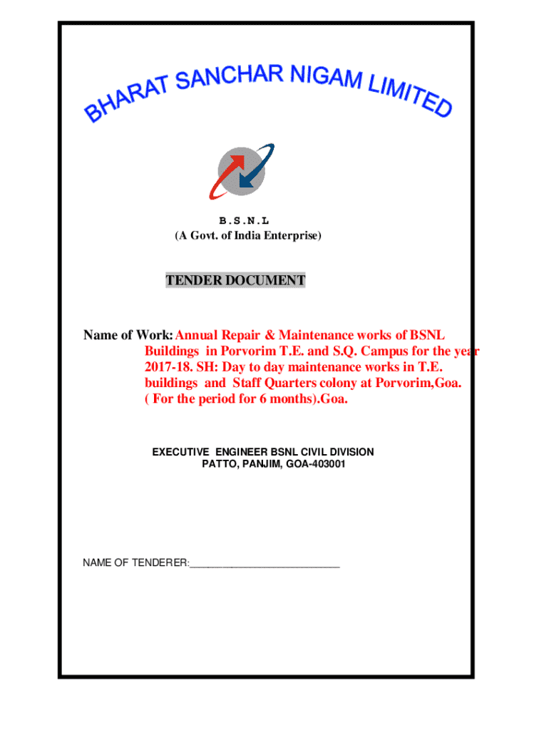 Get the free Name of Work: Annual Repair & Maintenance works of BSNL