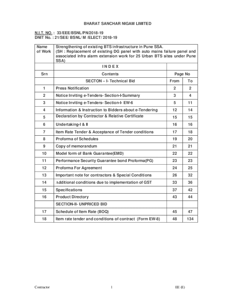 Get the free N.I.T. NO.: 12 / EEE / BSNL / PUNE / 2019-20 D.N.I.T. NO.