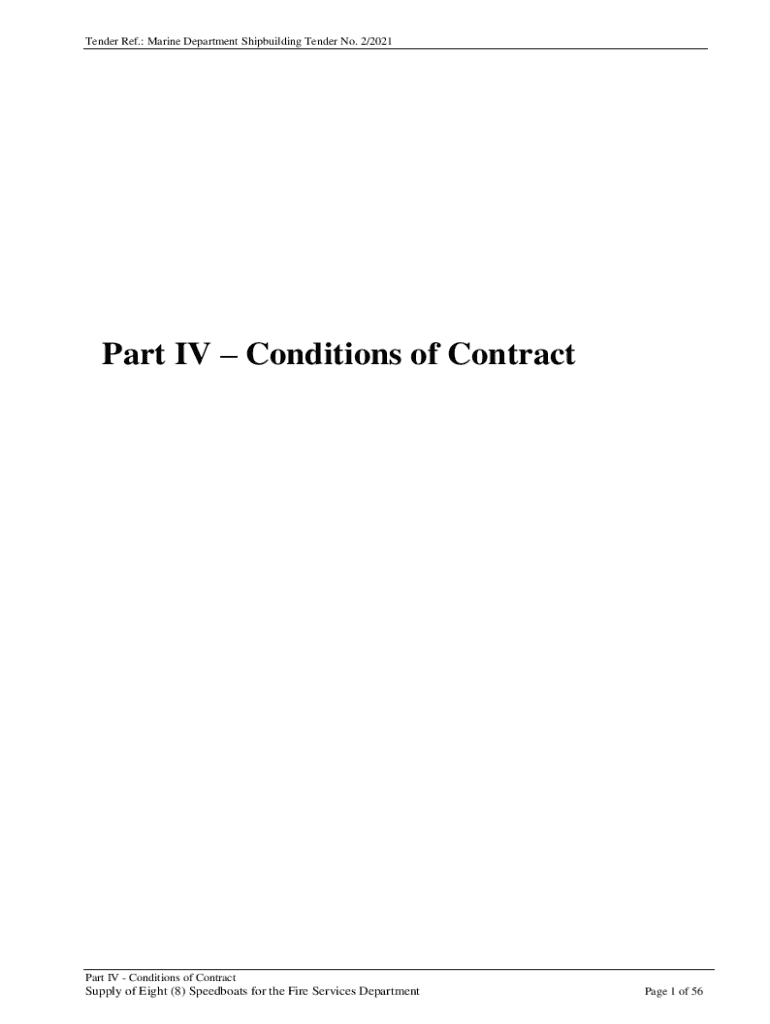 Tender Ref.: Marine Department Shipbuilding Tender No. 2/2021Part IV Conditions of ContractPart IV Conditions of ContractSupply of Eight (8) Speedboats for the Fire Services DepartmentPage 1 of 56Tender