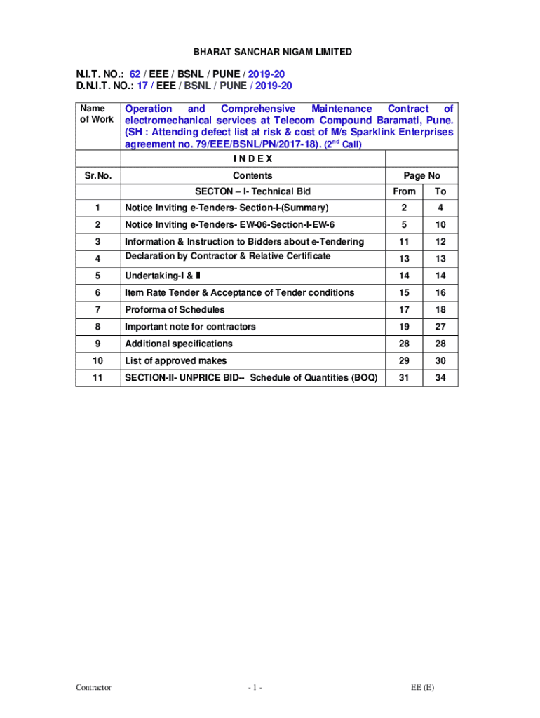 D.N.I.T. NO.: 17 / EEE / BSNL / PUNE / 201920
