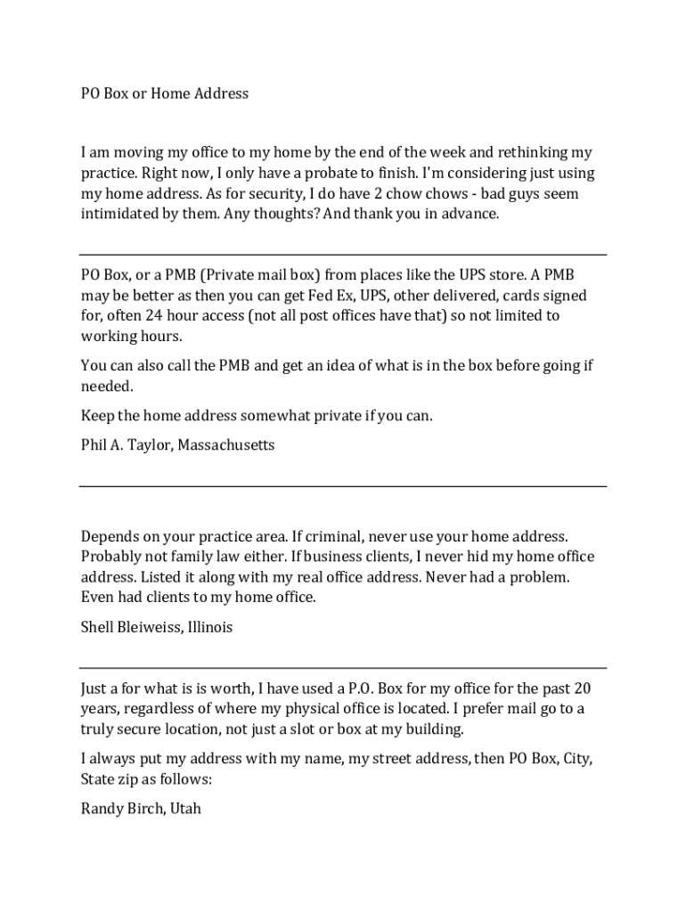 PO Box or Home Address