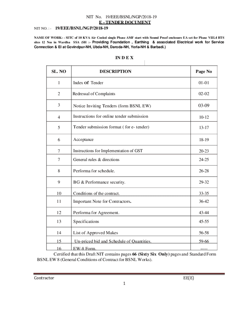 Nit No 19Eeebsnlngp2018-19 Contractor is not the form you're looking for?Search for another form here.