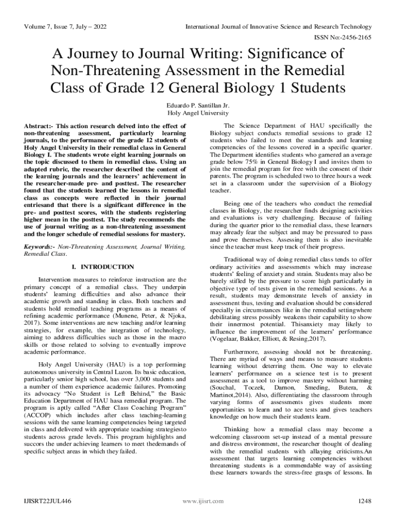 ISSN No:24562165A Journey to Journal Writing: Significance of