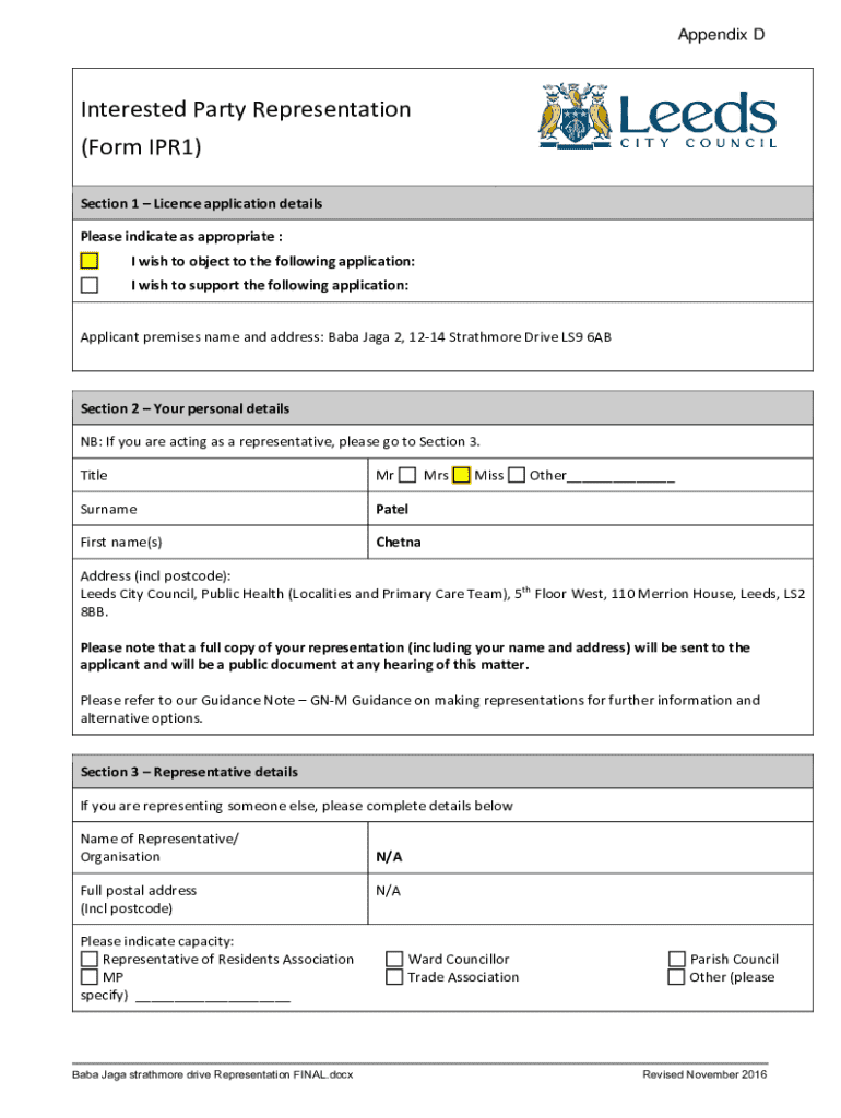 Appendix Interested Party Representation