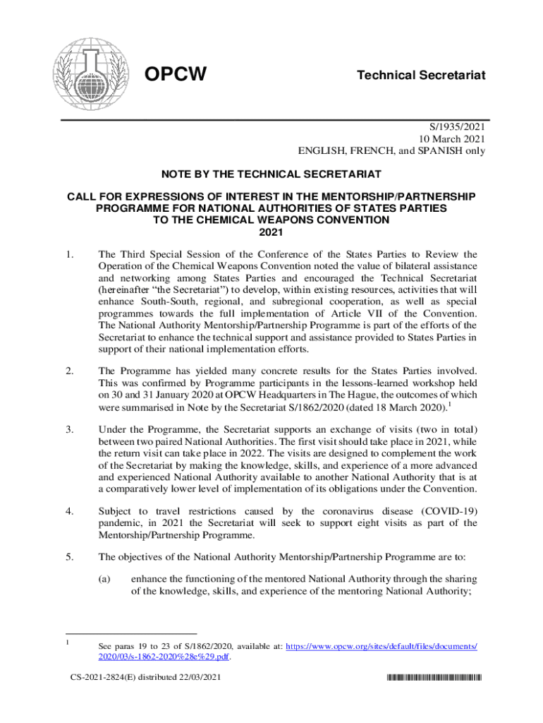 OPCWTechnical Secretariats/1935/2021