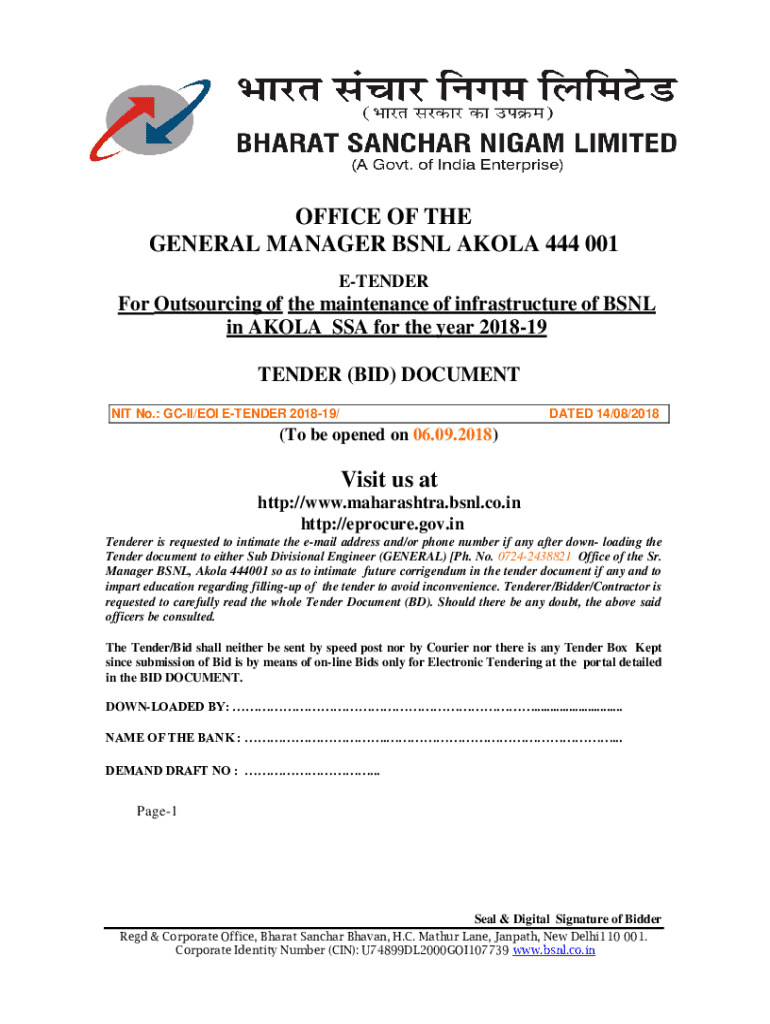 Tenderer Outsourcing of the maintenance of infrastructure of BSNL
