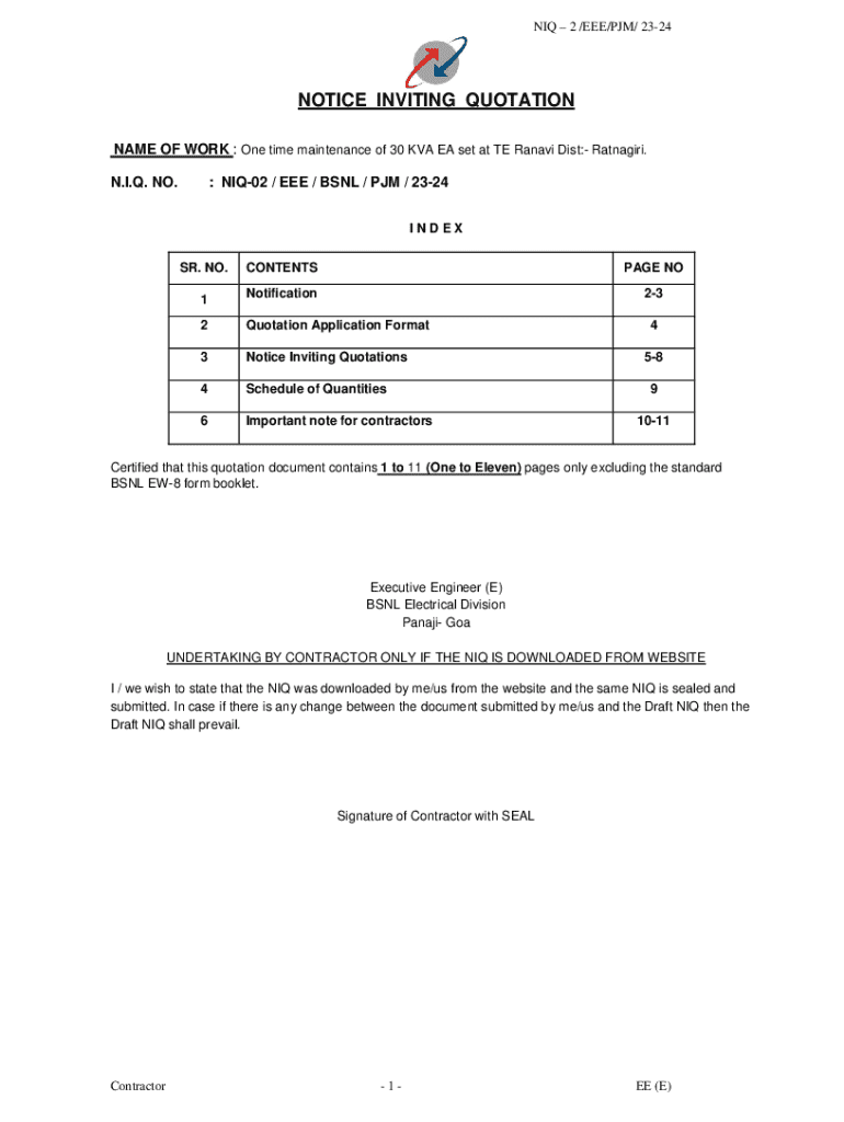 N.I.Q. NO.: NIQ02 / EEE / BSNL / PM / 2324