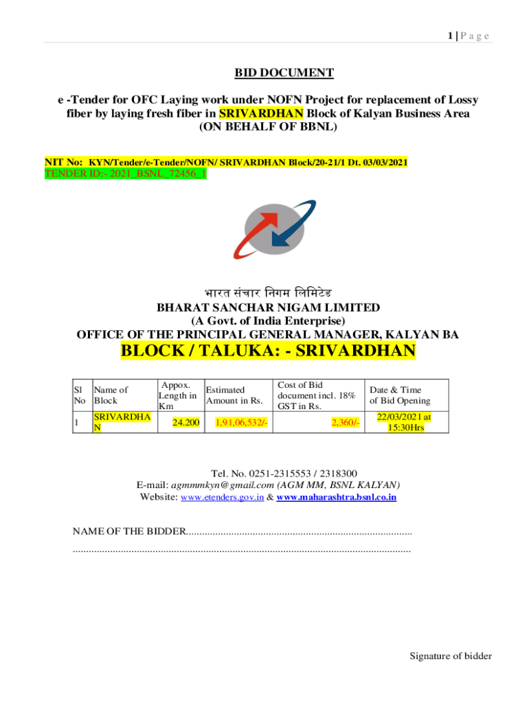 Get the free INVITATION OF BID FIXING/LAYING OF OPTICAL ...