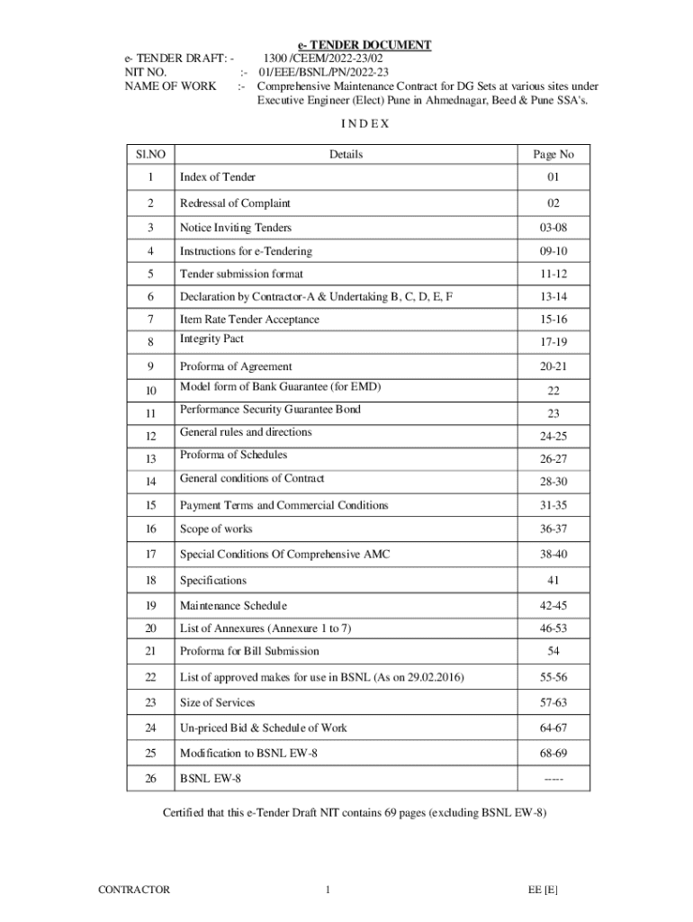 Get the free :- Comprehensive Maintenance Contract for DG Sets at various sites under