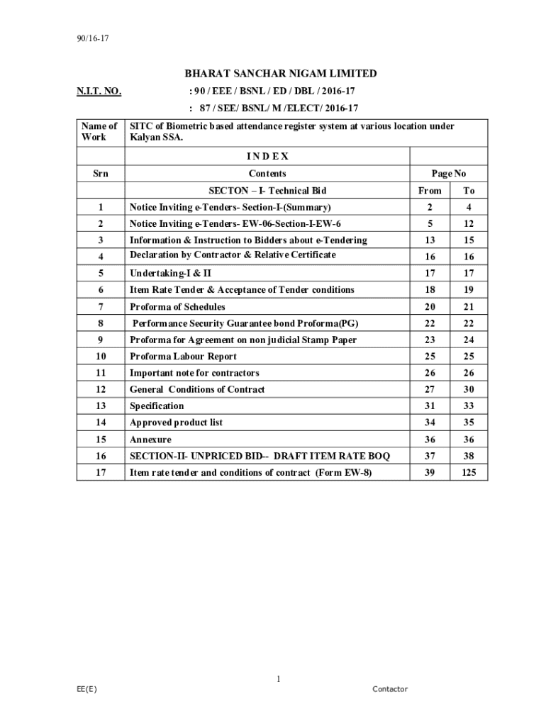 : 87 / SEE/ BSNL/ M /ELECT/ 201617Name of