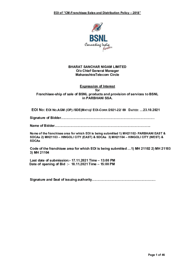 EOI of Franchisee Sales and Distribution Policy 2018BHARAT ANCHOR NI GAM LIMITED