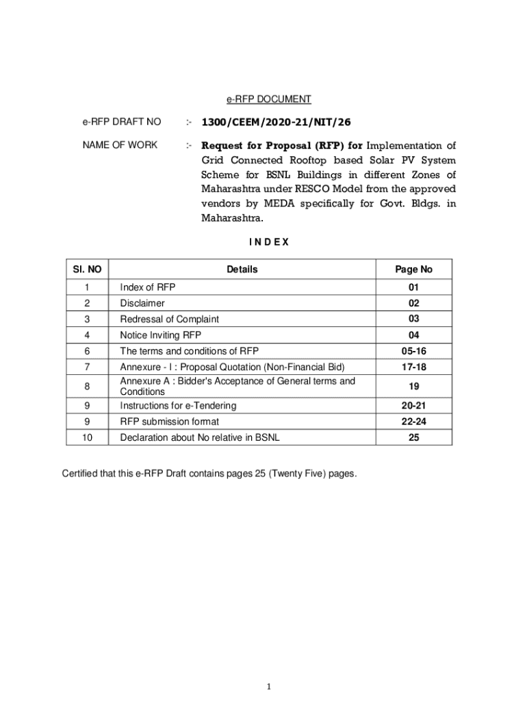 eRFP DRAFT NO:1300/CEEM/202021/NIT/26NAME OF WORK:Request for Proposal (RFP) for Implementation of