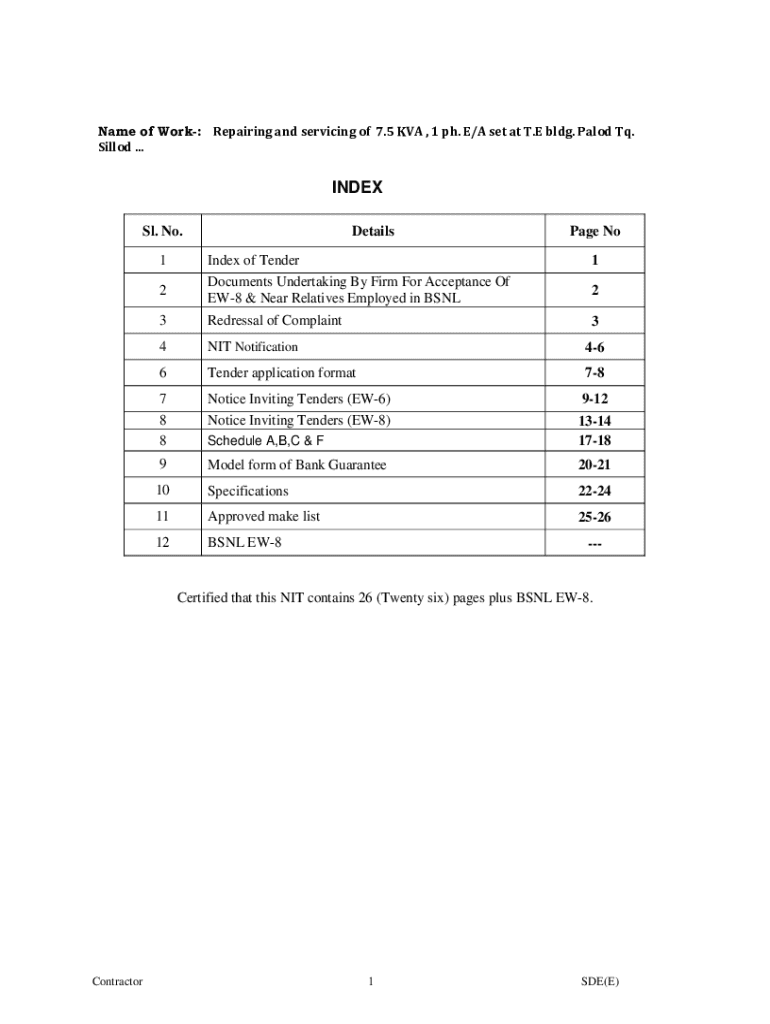 Name of Work: Repairing and servicing of 7.5 AVA, 1 pH. E/A set at T. E bldg. Paled TQ.