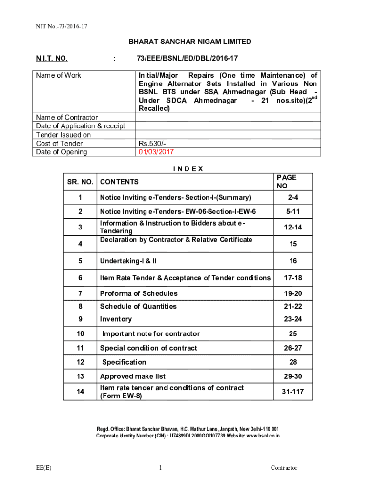 NIT No.73/201617BHARAT ANCHOR NI GAM LIMITED