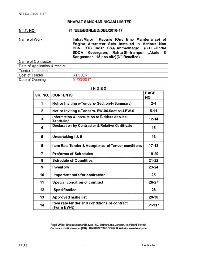 NIT No.74/201617BHARAT ANCHOR NI GAM LIMITED
