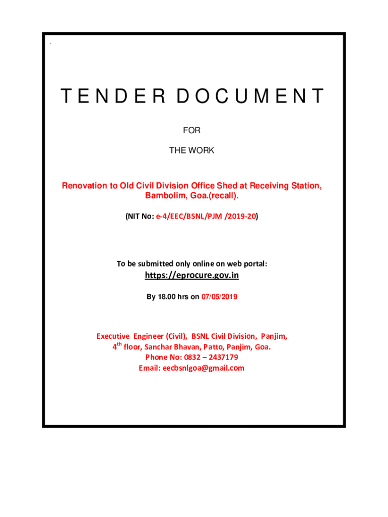 (NIT No: e4/EEC/BSNL/PM /201920)To be submitted only online on web portal:https://eprocure.gov.in