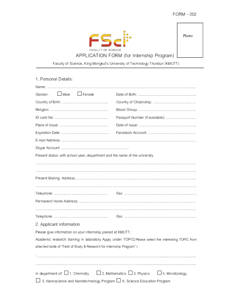 PhotoAPPLICATION FORM (for Internship Program)