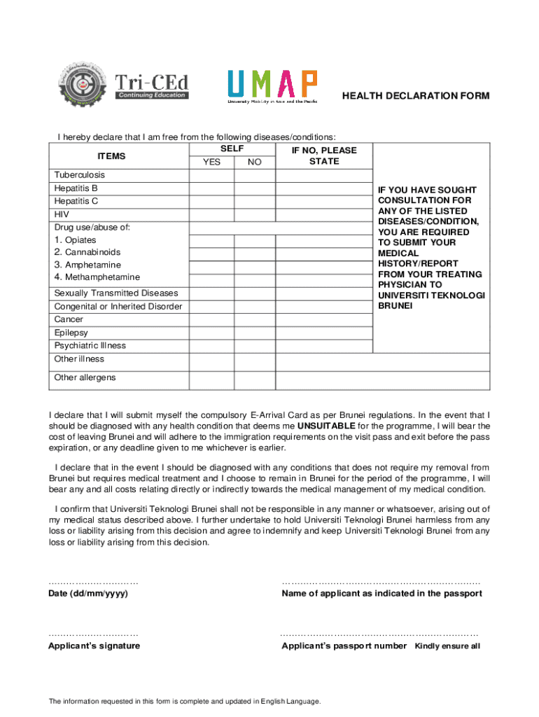 Get the free heal th declaration form for applicants - UKM