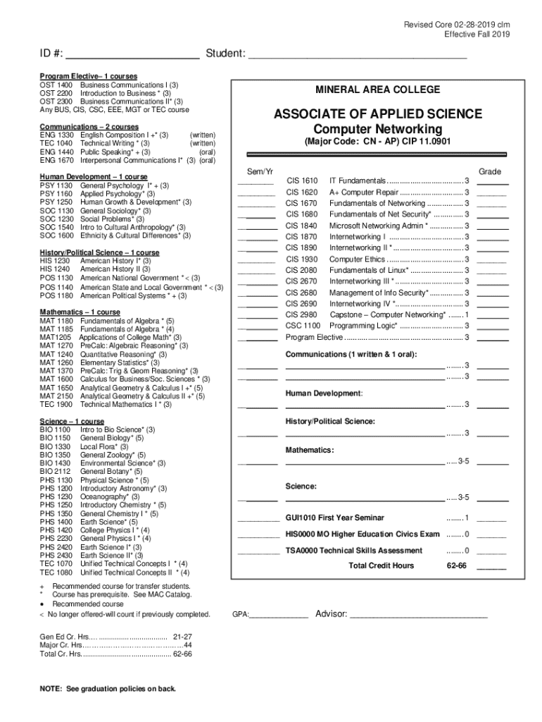 Effective Fall 2019ID #:Student: ___Program Elective 1 courses