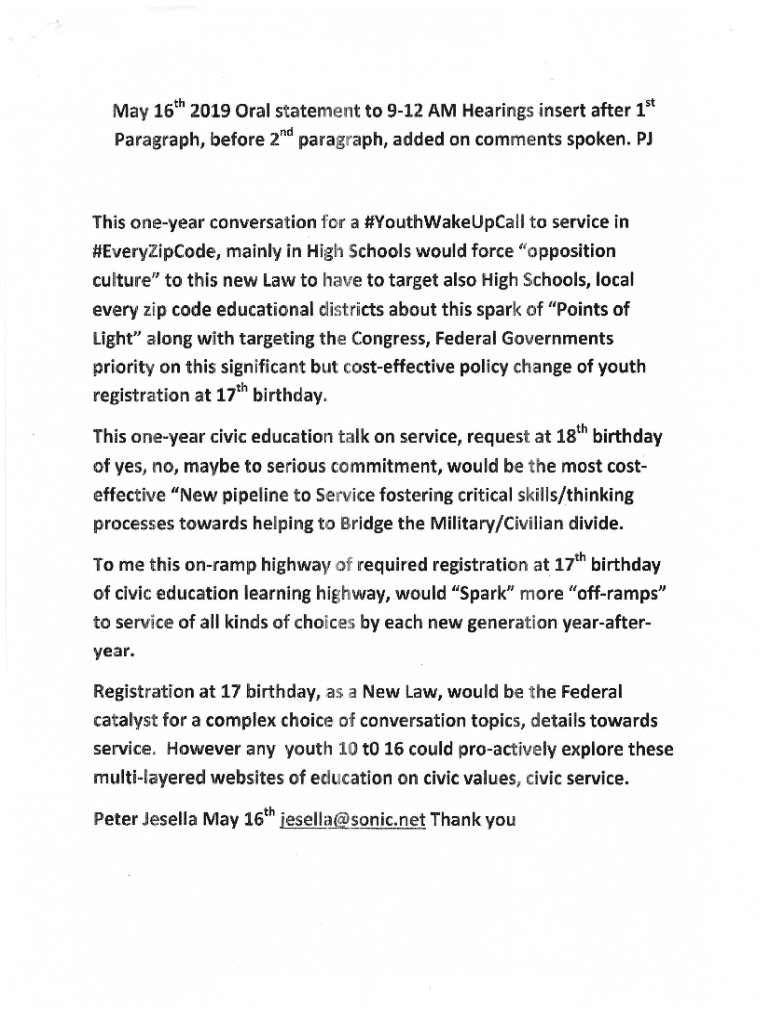 May 16th 2019 Oral statement to 912 AM Hearings insert after 1st