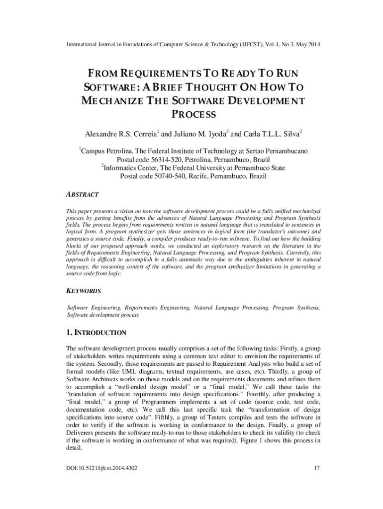 International Journal in Foundations of Computer Science & Technology (IJF CST), Vol.4, No.3, May 2014FROM REQUIREMENTS TO READY TO RUN