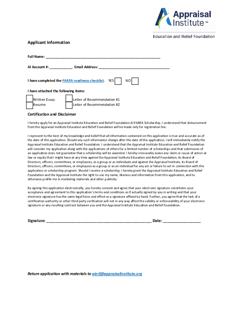 AI ERF AREA Scholarship ApplicationPractical Applications of Real Estate Appraisal (AREA) provides an alternative to the traditional