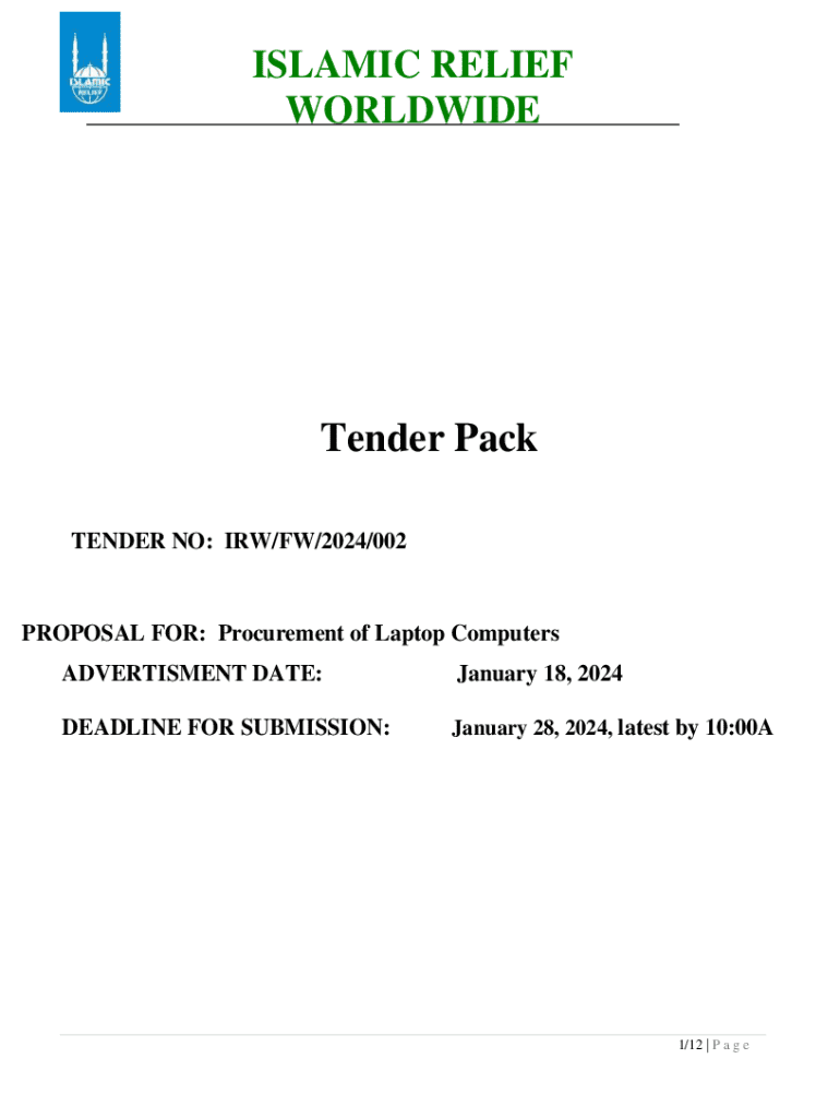 TENDER NO: IRA/FW/2024/002PROPOSAL FOR: Procurement of Laptop Computers