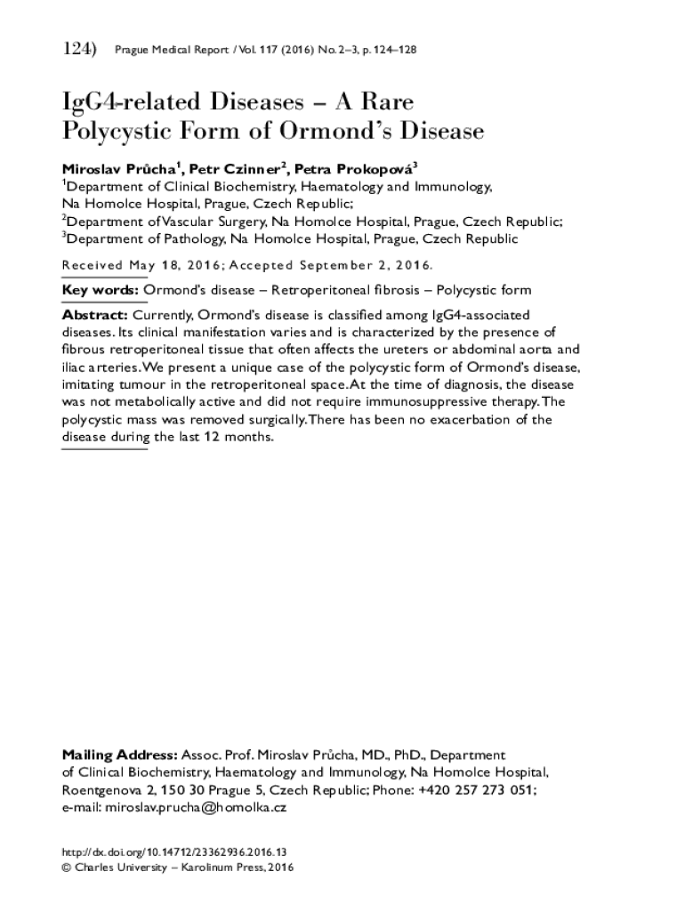 124)Prague Medical Report / Vol. 117 (2016) No. 23, p. 124128IgG4related Diseases A Rare