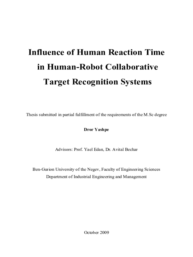Get the free Influence of Human Reaction Time in Human-Robot ...
