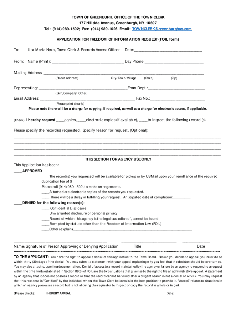 Get the free Freedom of Information Law (FOIL Form) - ...