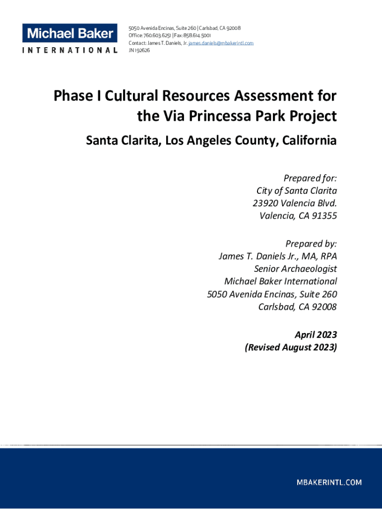 Get the free Phase I Cultural Resources Assessment for the Via Princessa Park ...