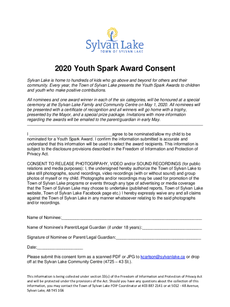Get the free Nominations are open for Sylvan Lake Youth Spark Awards