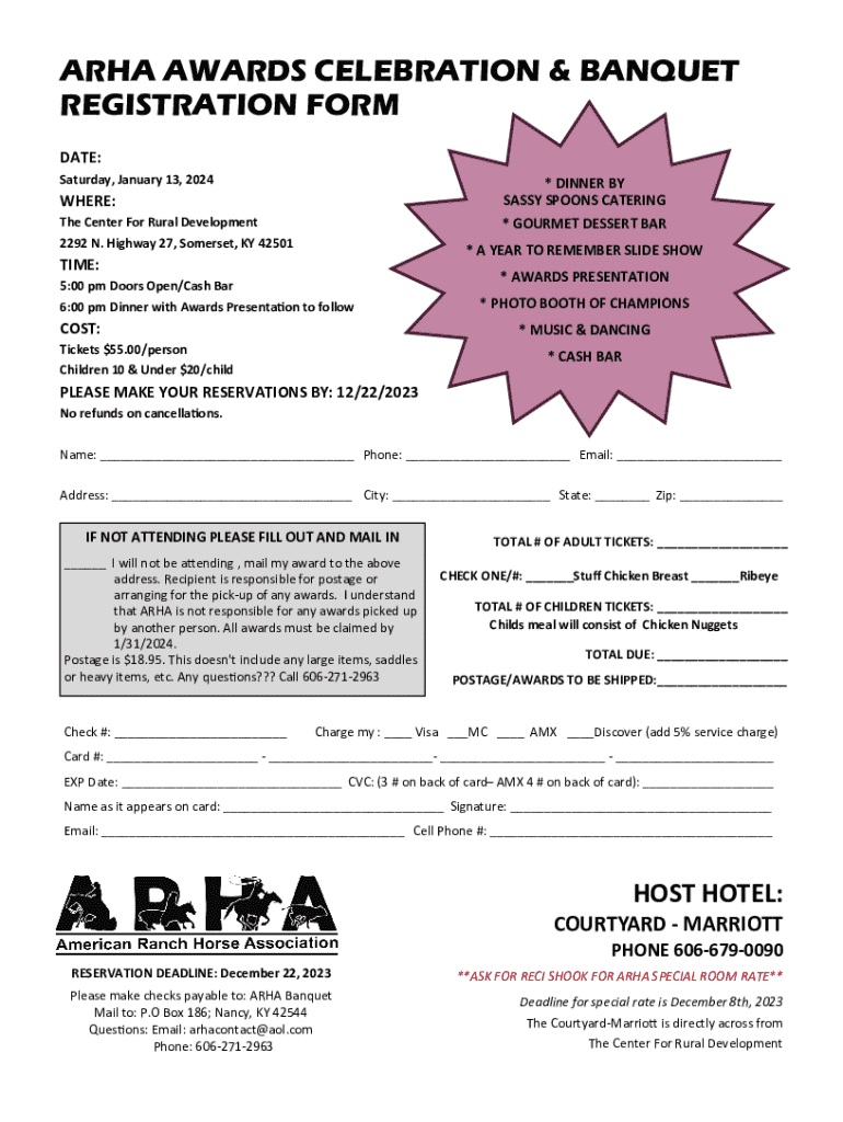 Get the free ARHA AWARDS CELEBRATION & BANQUET REGISTRATION FORM