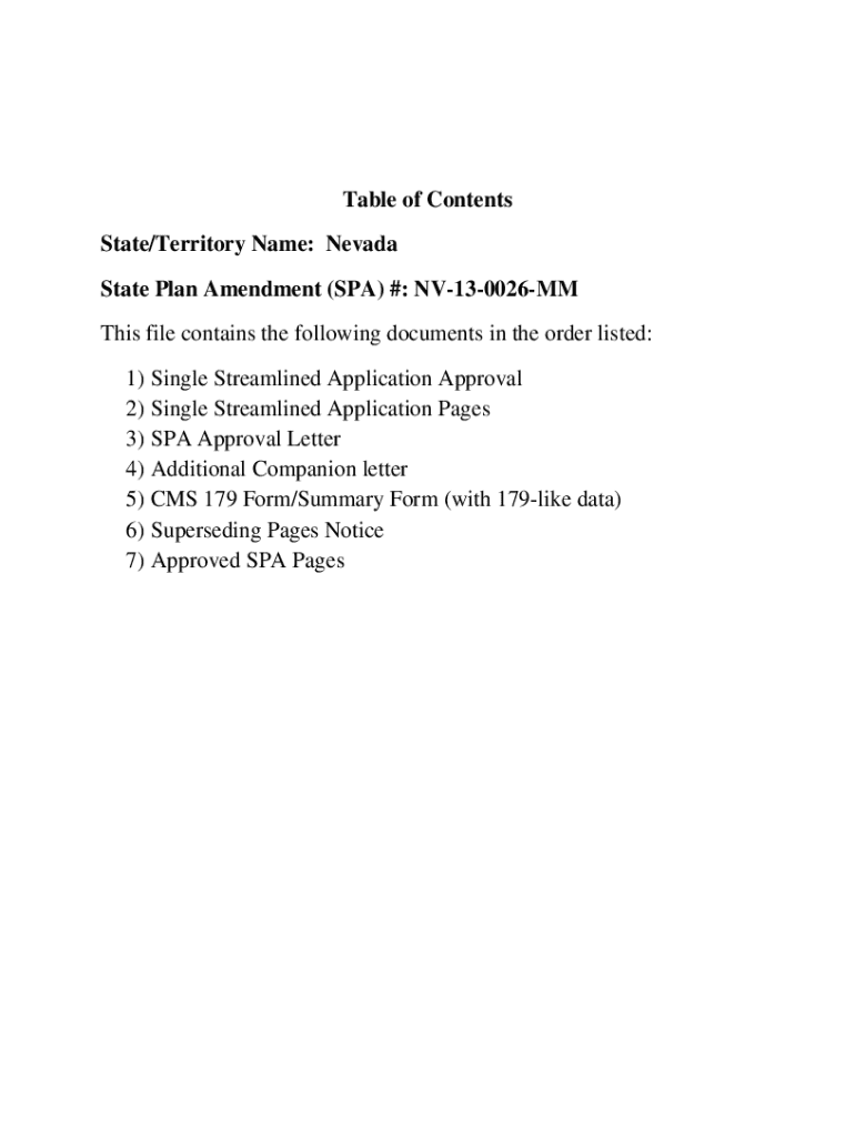 Get the free Nevada State Plan Amendment (SPA) #: NV-13-0026-MM
