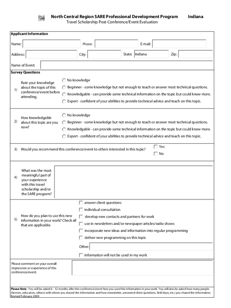 North Central Region ARE Professional Development ProgramIndianaTravel Scholarship PostConference/Event Evaluation